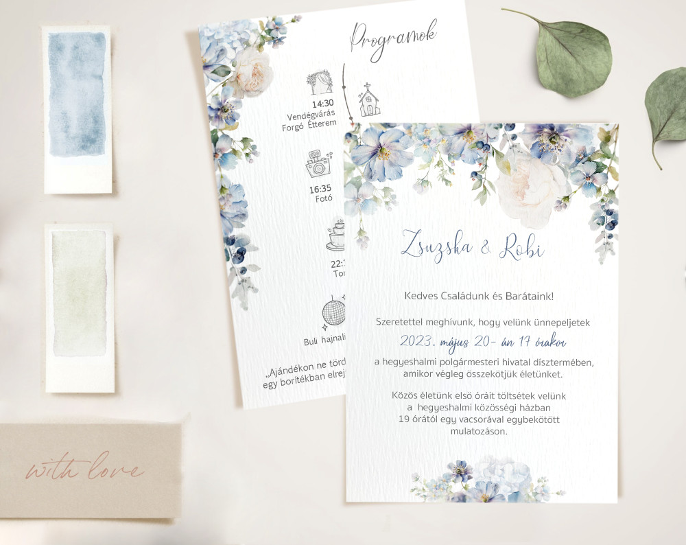 Művészi Textúra: A meghívó 250g-os, enyhén bordázott művészpapírra készül. Ez a finom felületi érdesség extra mélységet ad a színeknek, és prémium tapintást biztosít – olyan érzés kézbe venni, mint egy akvarell festményt.