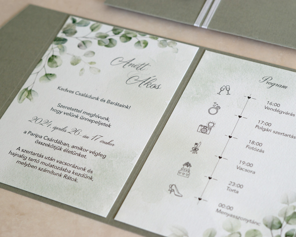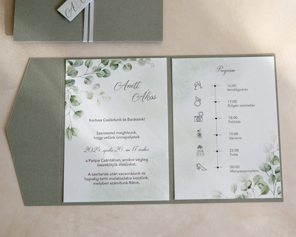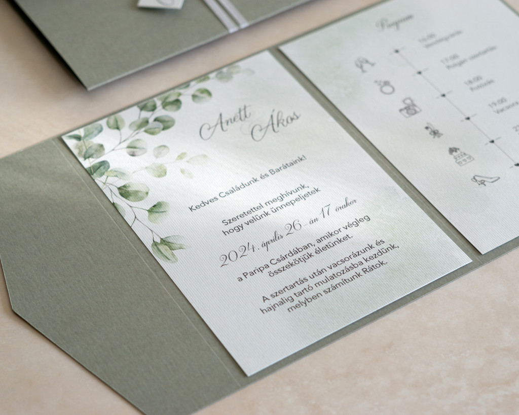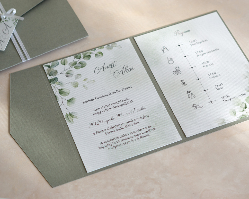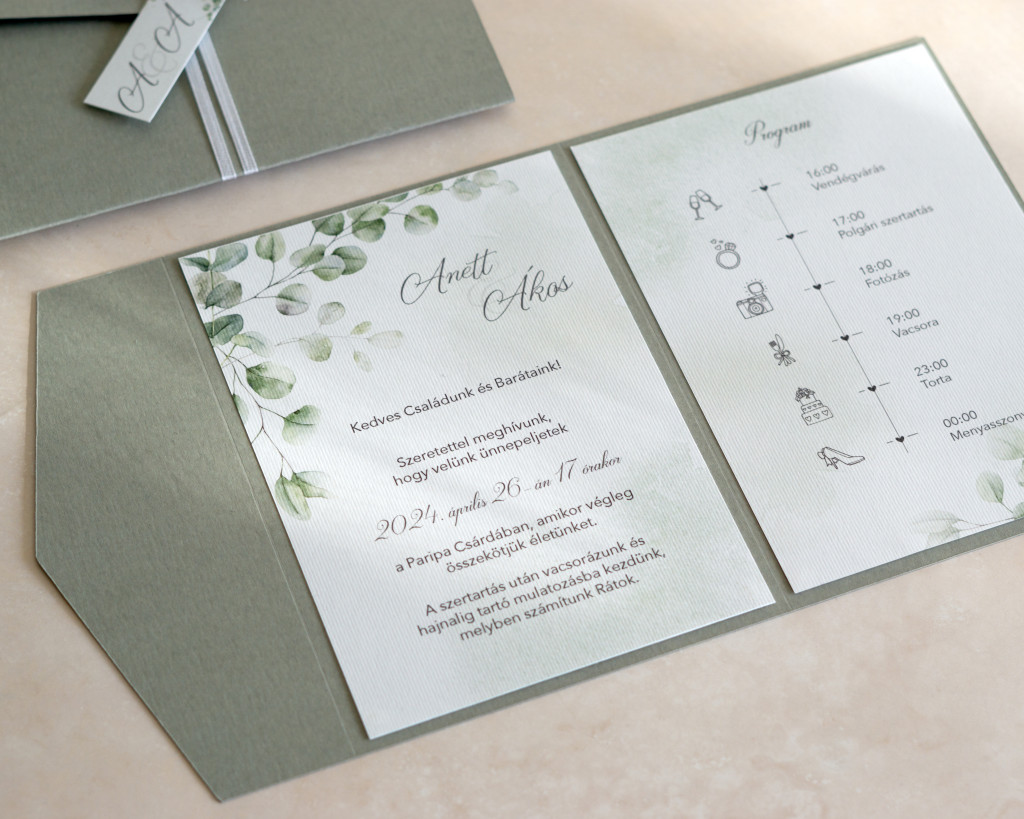 Ez a "borítékos" típusú meghívó a praktikum és az esztétikum tökéletes találkozása.