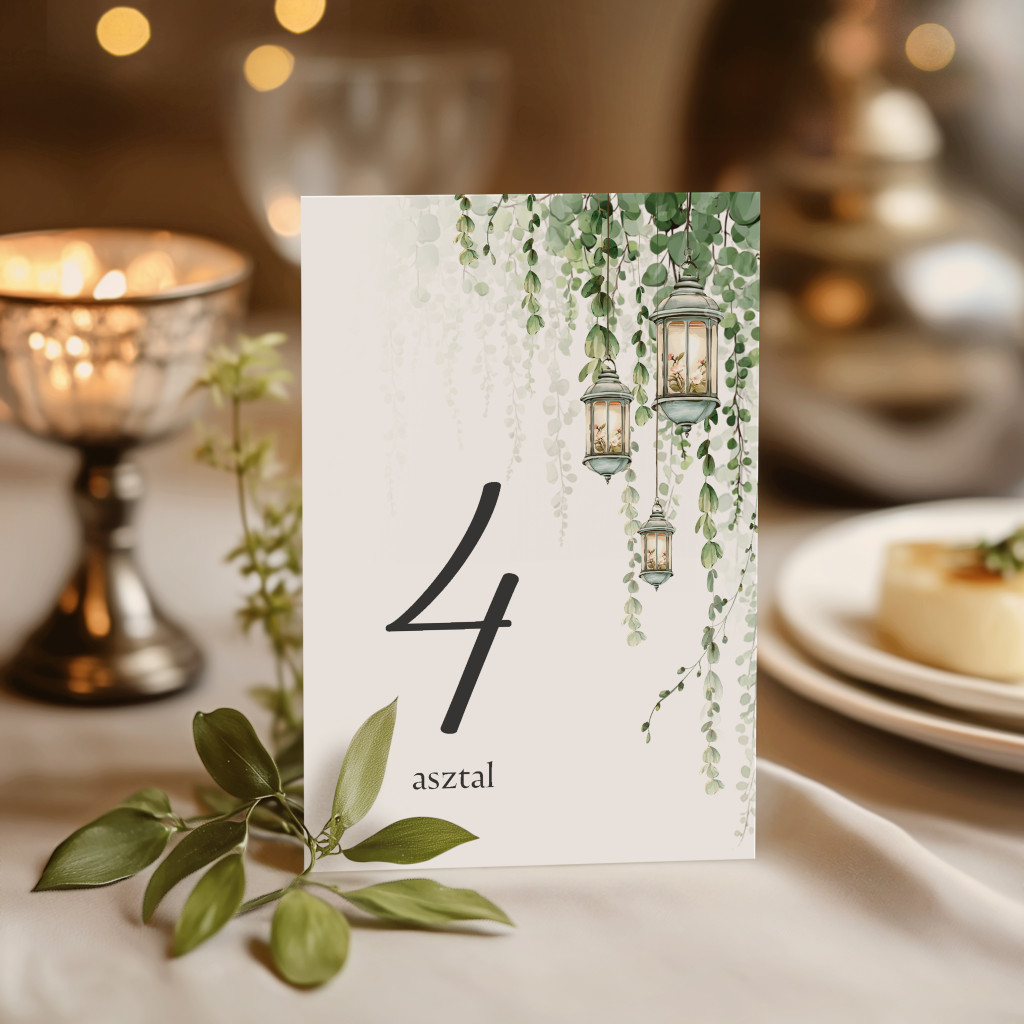 Erdei Fények esküvői asztalszám