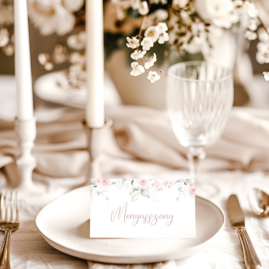 Rózsaszín romantikus ültetőkártya