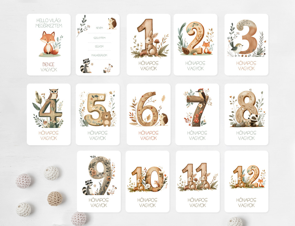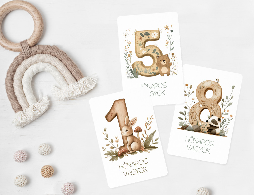 Woodland baba mérföldkő kártyák, melyekkel egyedivé teheted babád fotóit az emlékezetes pillanatok megörökítésekor.